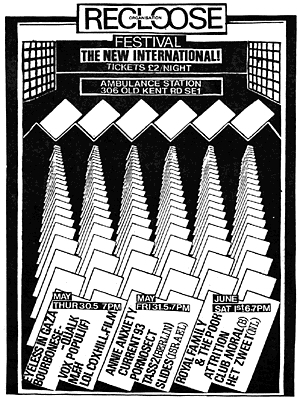 Organised by Bourbonese Qualk. Several other bands played on day 1 (Bourbonese Qualk, Lol Coxhill, Non Toxique Lost and Vox Populi!) and day 2 (Annie Anxiety, Current 93, Pornosect and T.A.S.S.II). All the time we stayed at the Ambulance Station, we had to block the kitchen where we were supposed to sleep on the floor because a small army of bums steadily tried to break in the door looking for food and other valuables. Our driver slept in his car for three days but still the car was burgled, while we were playing. With: